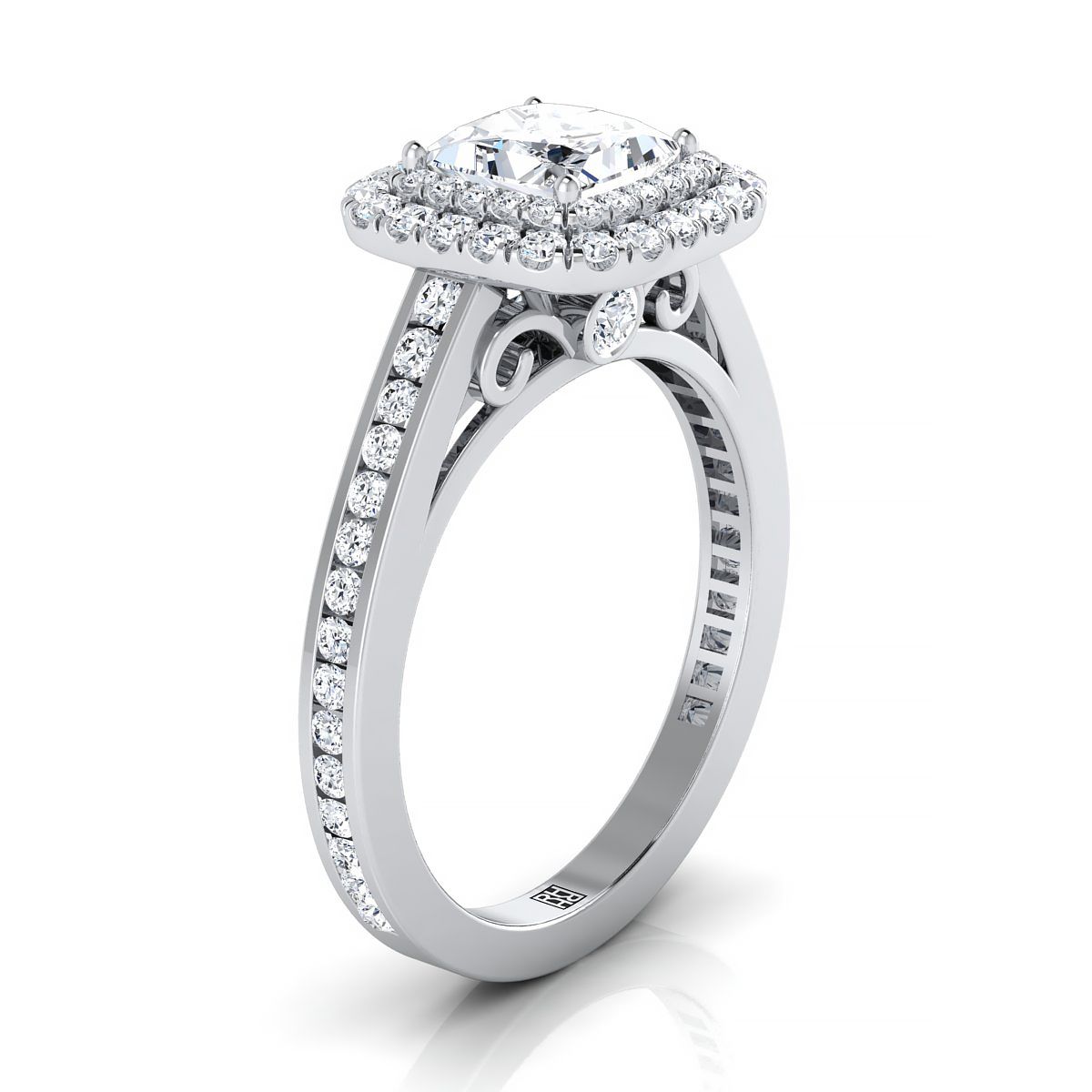 Exquisitely Handcrafted, This Princess Cut Double Pave Halo Engagement Ring Showcases Brilliant Cut Diamonds (h-i/vs 0.60ctw) Beautifully Set In A Classic 14k White Gold Setting.