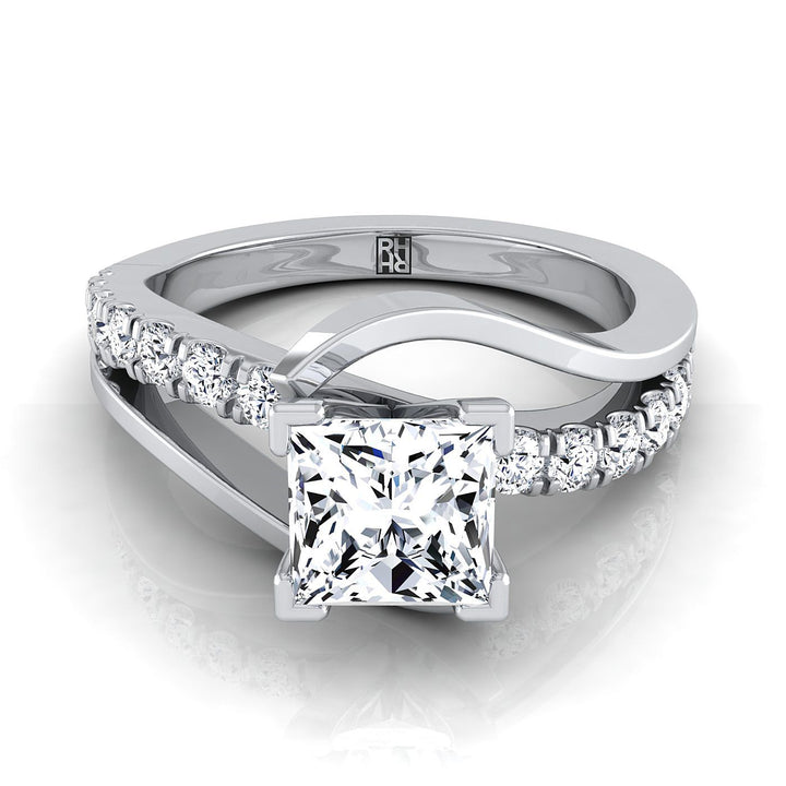14K White Gold Princess Cut Unique Bypass Diamond Pave Swirl Engagement Ring -3/8ctw