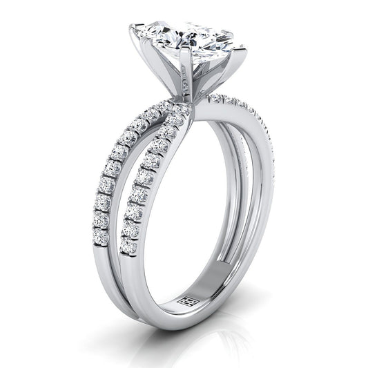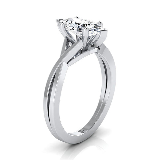 This asymmetrical diamond engagement ring setting features a custom-curved band, handcrafted in Los Angeles to perfectly complement the unique shape and size of your chosen center diamond. Unlike standard settings, this design embraces modern artistry with a striking, fluid silhouette that highlights your diamond from every angle.
