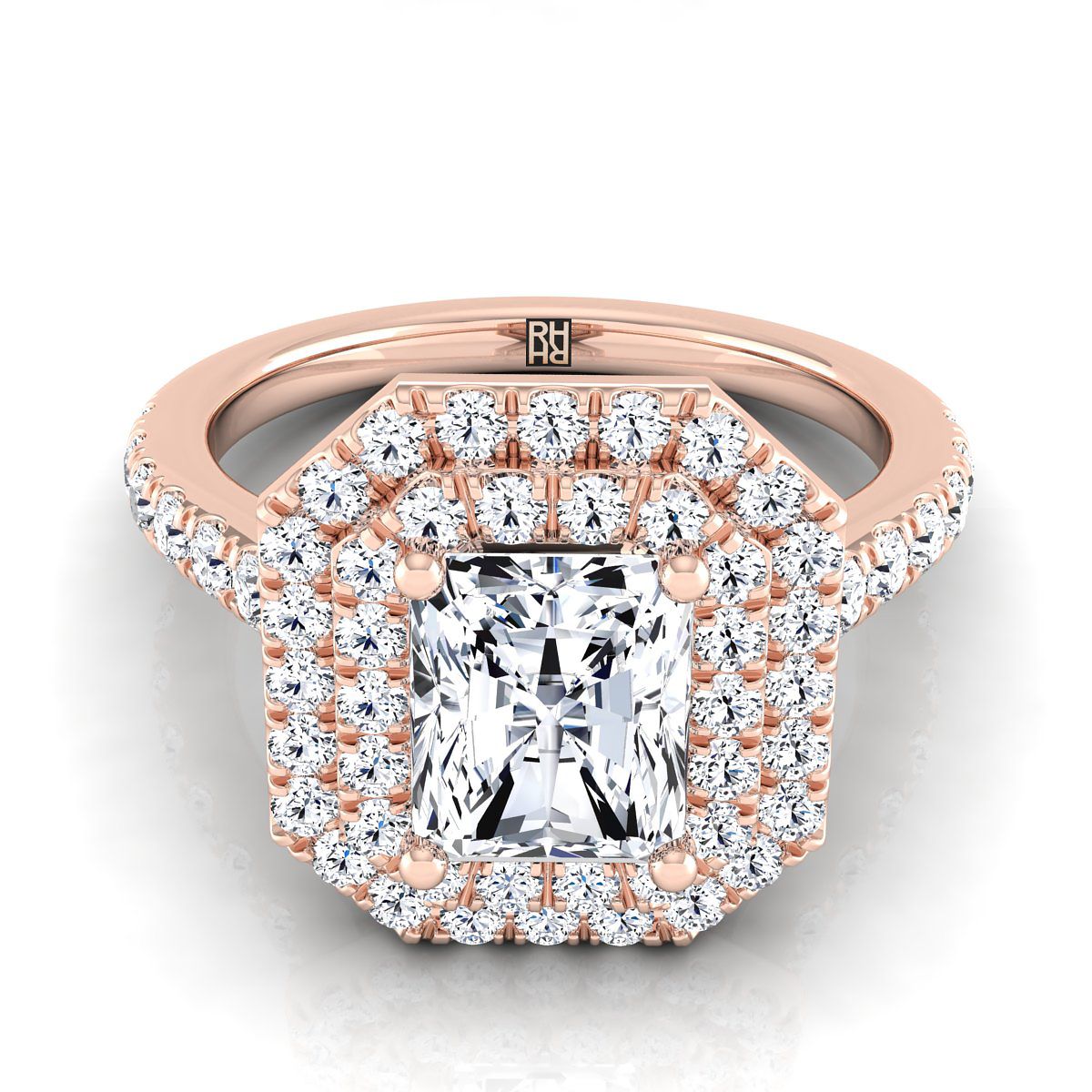 Exquisitely Handcrafted, This Double Pave Radiant Cut Halo Engagement Ring Showcases Brilliant Cut Diamonds (h-i/vs 0.80 Ctw) Beautifully Pave Set In A Classic 14k Rose Gold Setting.