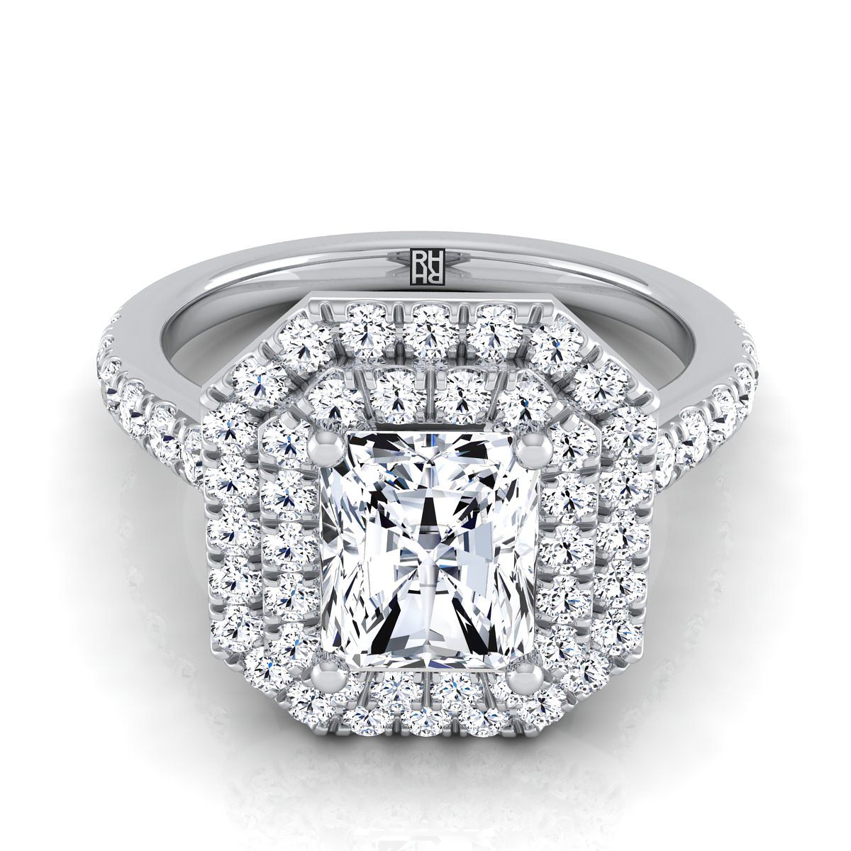 Exquisitely Handcrafted, This Double Pave Radiant Cut Halo Engagement Ring Showcases Brilliant Cut Diamonds (h-i/vs 0.80 Ctw) Beautifully Pave Set In A Classic 18k White Gold Setting.