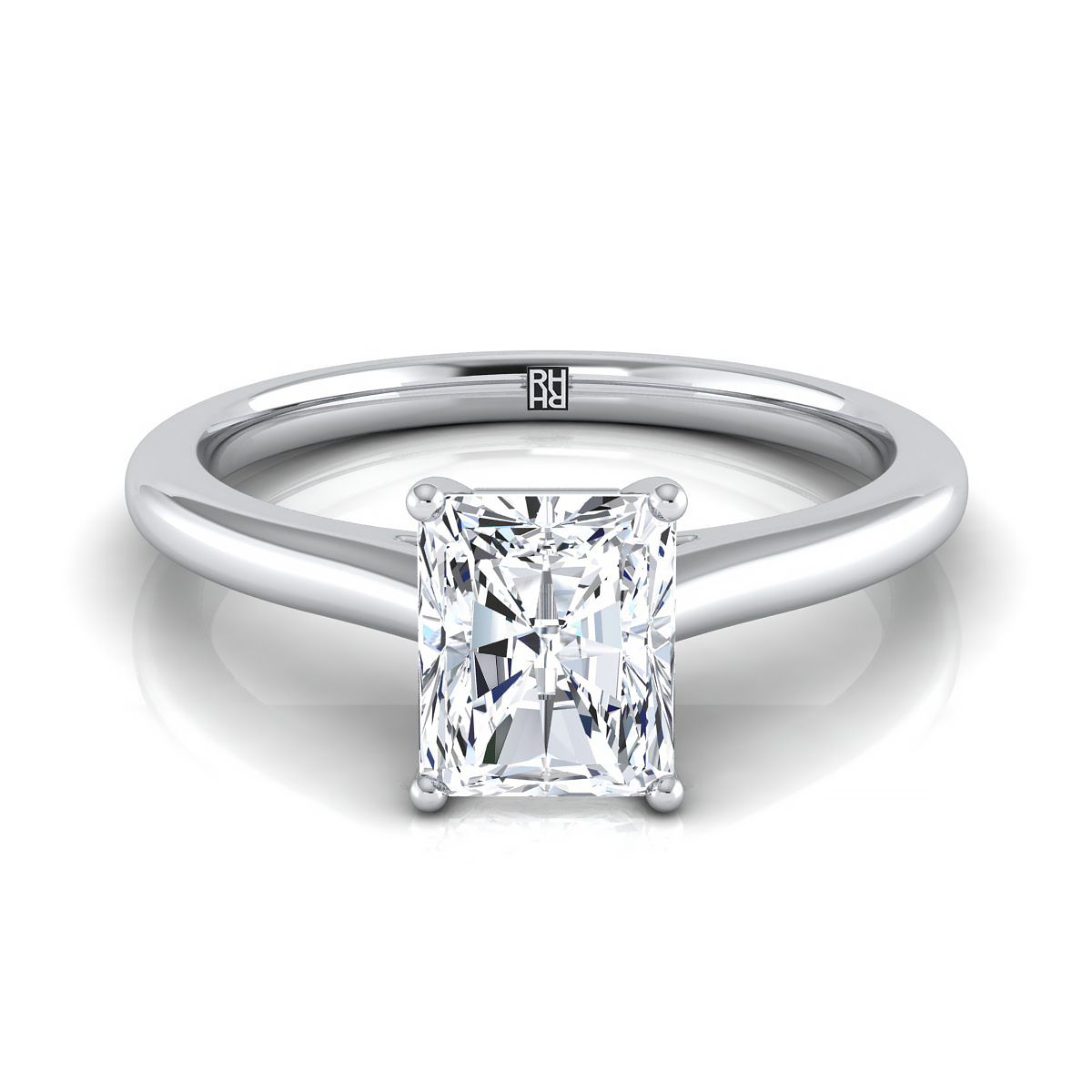 Refined Elegance, This Radiant Cut Diamond Solitaire Engagement Ring Showcases A Cathedral Setting With Half Rounded Shank In 14k White Gold.