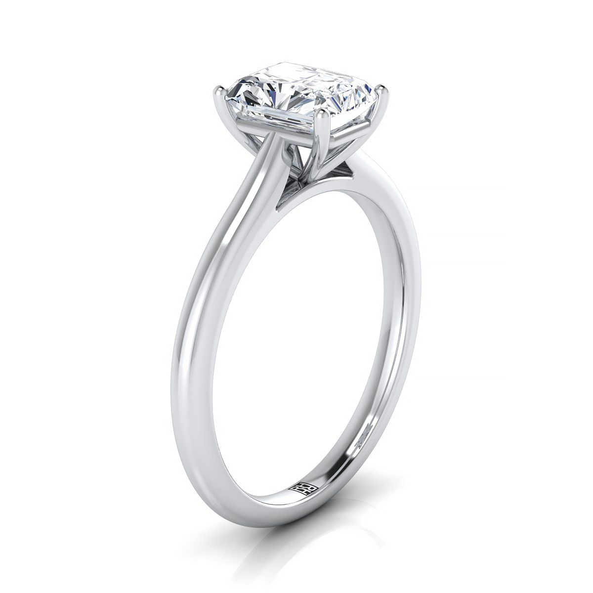 14K White Gold Radiant Cut Center Pinched Comfort Fit Claw Prong Solitaire Engagement Ring