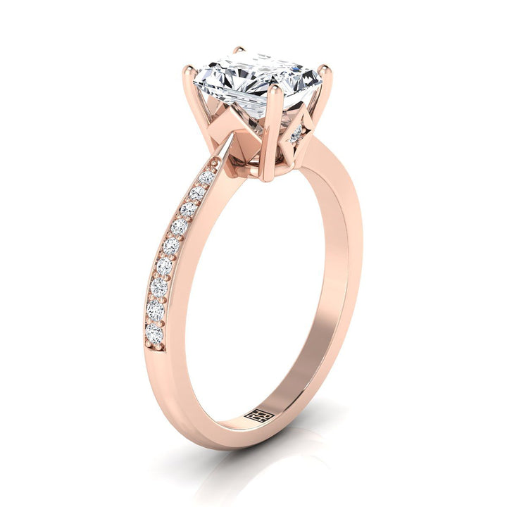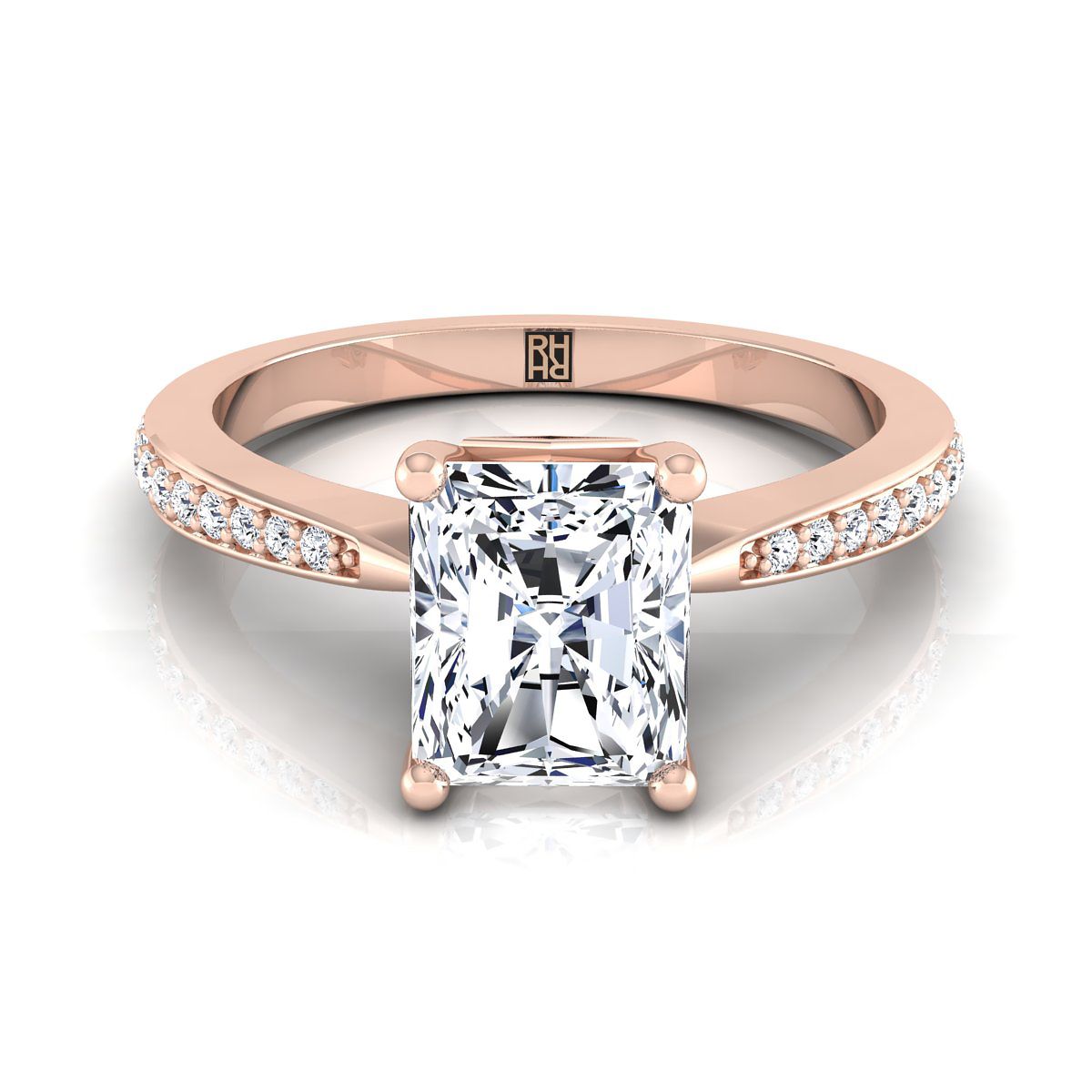 14K Rose Gold Radiant Cut Center Diamond Tapered Pave Engagement Ring -1/8ctw