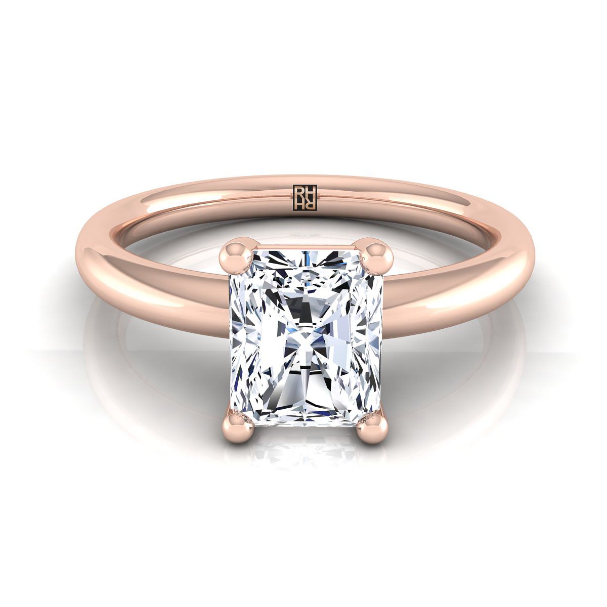 Classic And Elegant, This Radiant Cut Diamond Solitaire Engagement Ring Showcases A 4 Prong Setting With Rounded Shank In 14k Rose Gold.