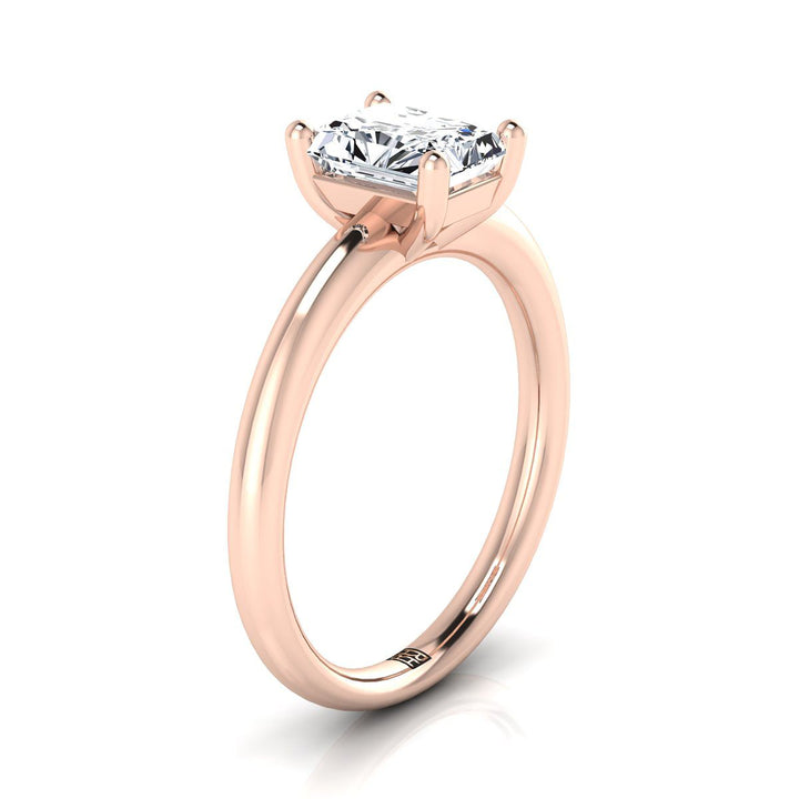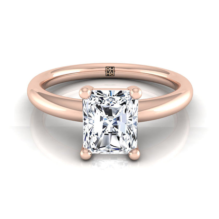 14K Rose Gold Radiant Cut Center Rounded Comfort Fit Solitaire Engagement Ring