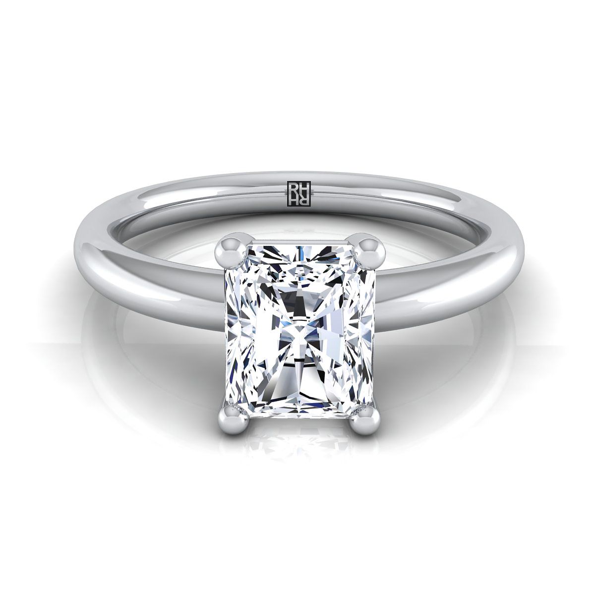 14K White Gold Radiant Cut Center Rounded Comfort Fit Solitaire Engagement Ring