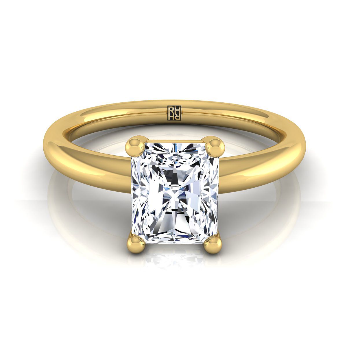 14K Yellow Gold Radiant Cut Center Rounded Comfort Fit Solitaire Engagement Ring