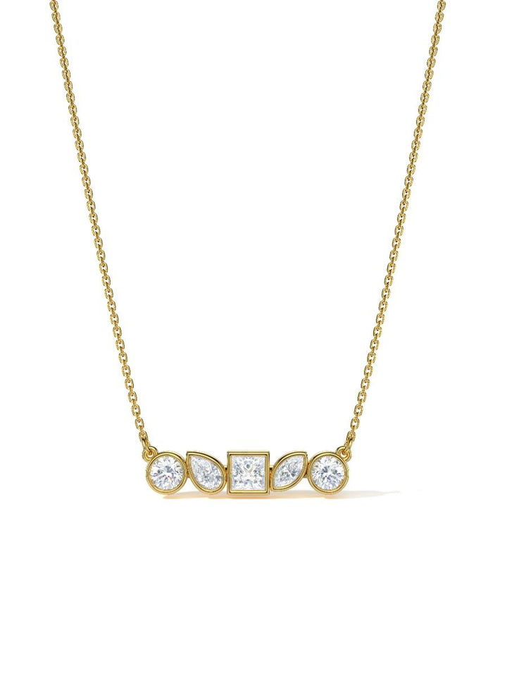 ROCKHER 14K Yellow Plate .925 Sterling Silver Five Fancy White Cubic Zirconia Bezel Set Line Pendant Necklace on 18" Chain