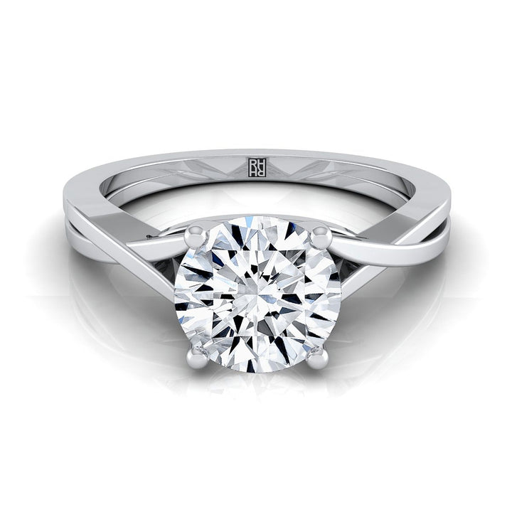 18K White Gold Round Brilliant Delicate Twist Solitaire Engagement Ring