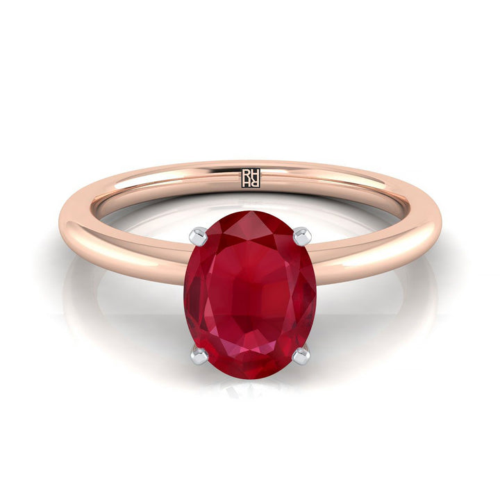 14k Rose Gold Engagement Ring With 8 X 6mm Oval Ruby Center Stone And Rounded Shank And 4 Prong Setting