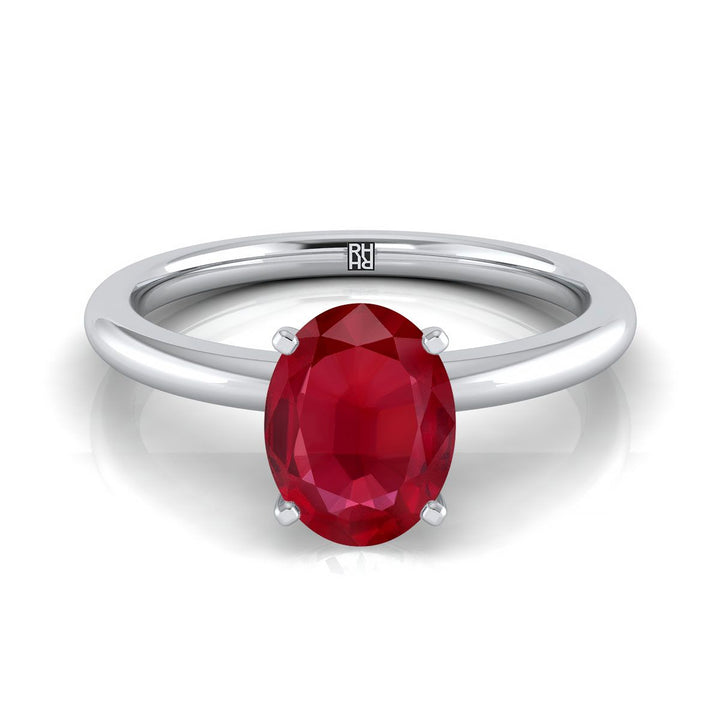 14k White Gold Engagement Ring With 8 X 6mm Oval Ruby Center Stone And Rounded Shank And 4 Prong Setting