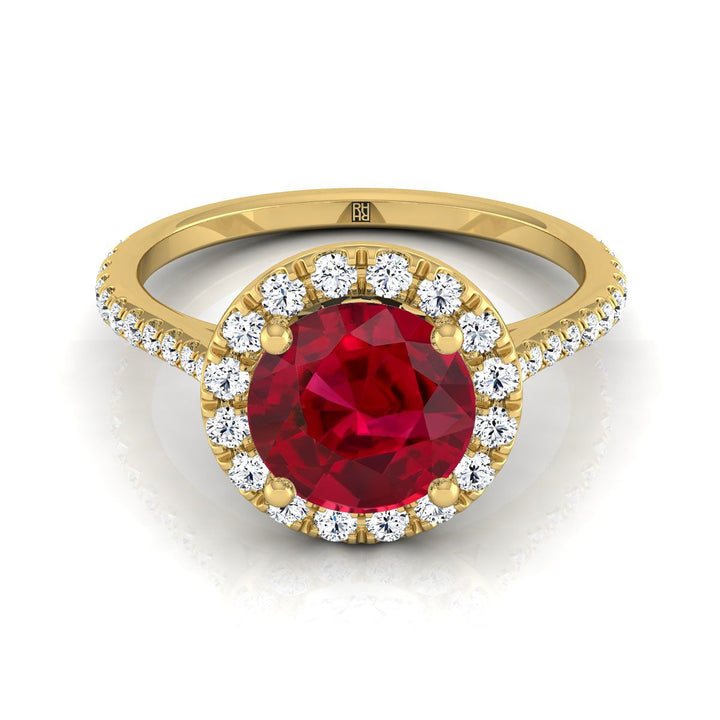 14k Yellow Gold Engagement Ring With 5mm Round Ruby Center Stone And 40 Round Brilliant Diamonds Weighing 0.40ctw