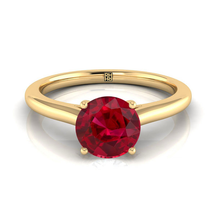 14K Yellow Gold Round Brilliant Ruby Pinched Comfort Fit Claw Prong Solitaire Engagement Ring