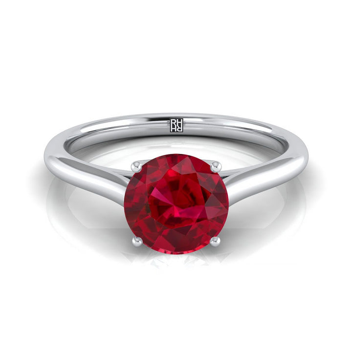18K White Gold Round Brilliant Ruby Cathedral Style Comfort Fit Solitaire Engagement Ring