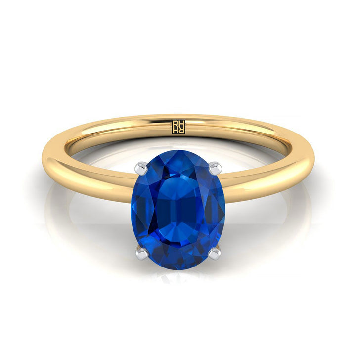 14k Yellow Gold Engagement Ring With 8 X 6 Mm Oval Sapphire Center Stone And Rounded Shank And 4 Prong Setting