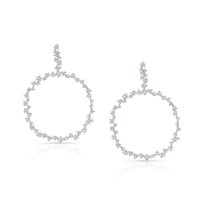 14 karat white gold scattered diamonds circle earrings with 3.38ctw round brilliant I/SI diamonds