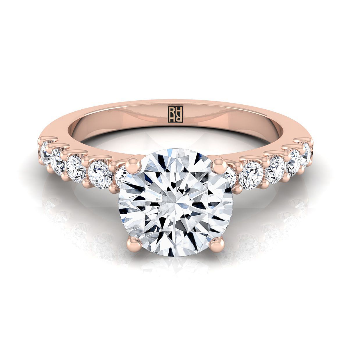 Exquisitely Handcrafted In 14k Solid Rose Gold, This Shared Prong Set Diamond Engagement Ring Creates The Perfect Setting For A Classic Solitaire Diamond Stone That Will Last A Lifetime.