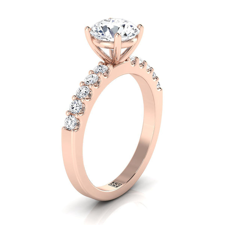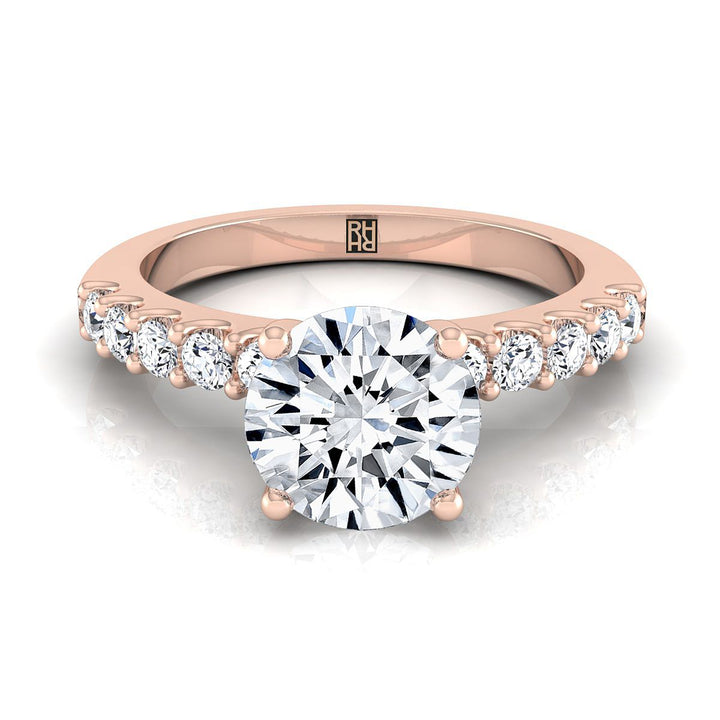 14K Rose Gold Round Brilliant Simple Linear Diamond Pave Engagement Ring