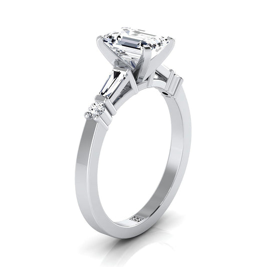 Platinum Emerald Cut Cathedral Style Solitaire Engagement Ring