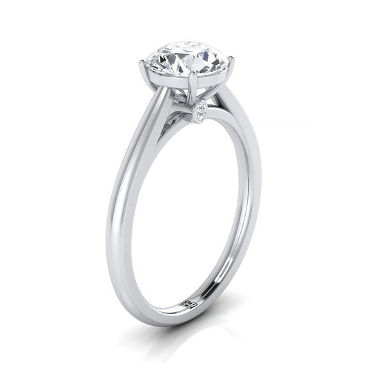 18K White Gold Round Brilliant Rounded Comfort Fit Secret Stone Solitaire Engagement Ring